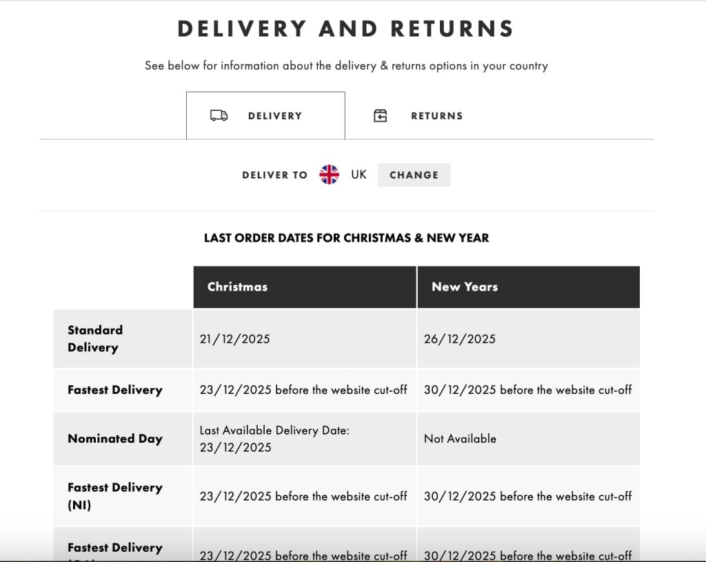 - Highlight returns information alongside delivery details so customers feel reassured if something goes wrong.
