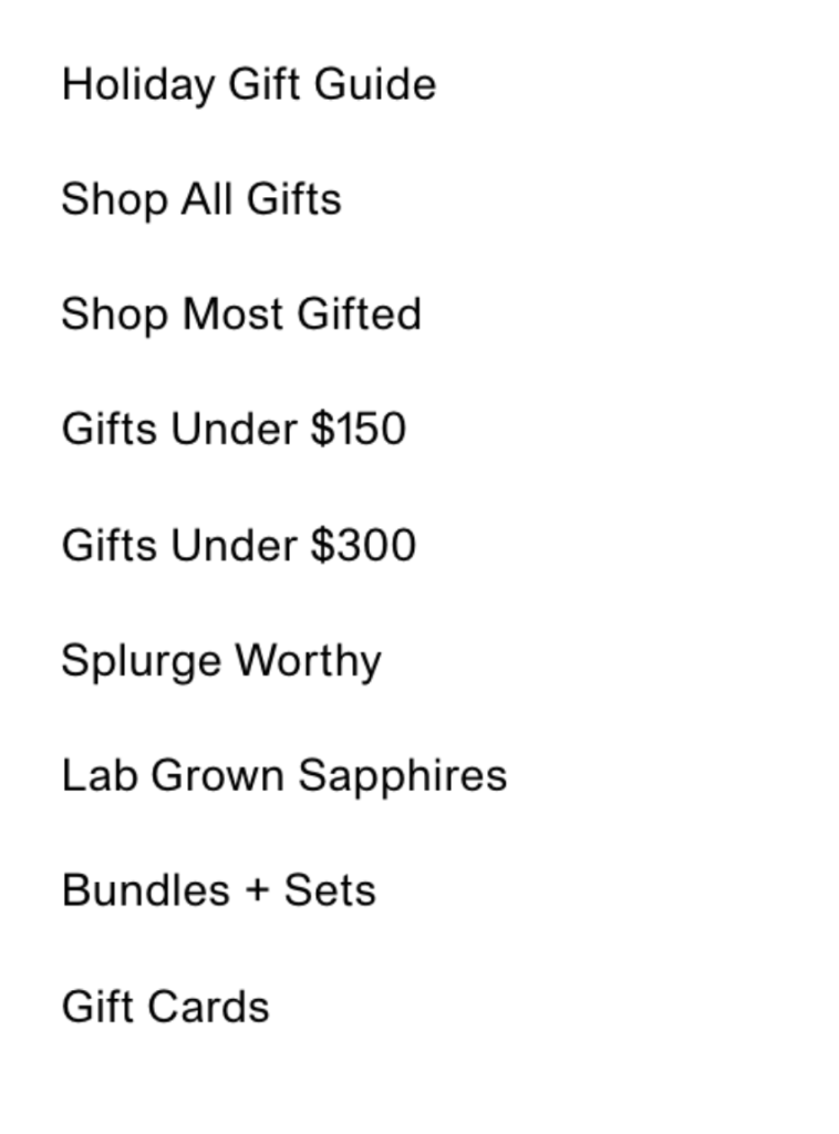 Mejuri is a great example here. Their gift guide landing page and sub-collections are clean, intuitive and supported by clever copy. They are a larger brand with strong UX and website practices, so that they can invest in multiple curated gift paths. Smaller brands do not need to replicate everything. One well-considered holiday collection may be all you need, as long as it helps shoppers find what they are looking for quickly.